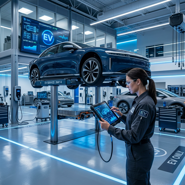 Certified EV mechanics, battery diagnostics, and tire services.